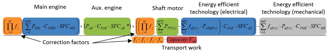 The top line of the EEDI formula can be divided into four key parts: